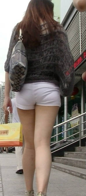 【编号824】街拍白色热裤性感苗条长腿美女