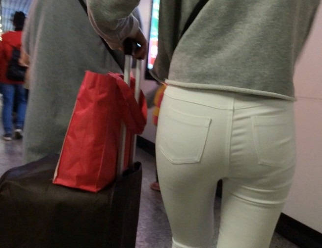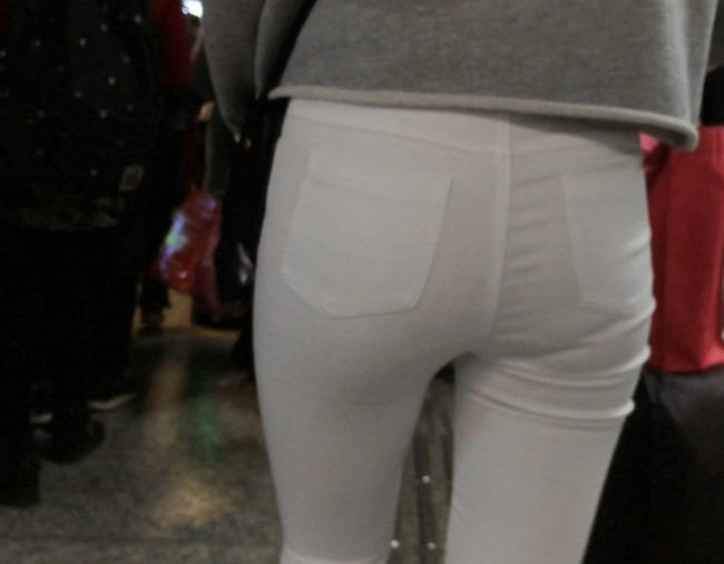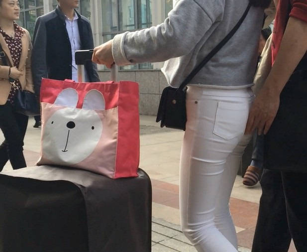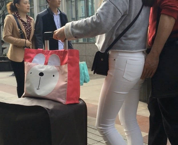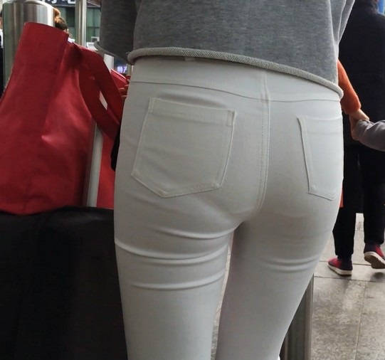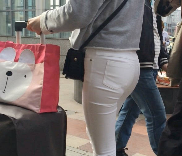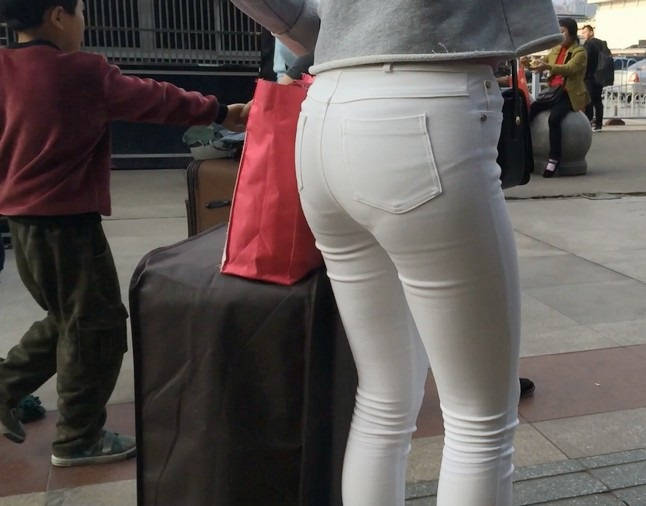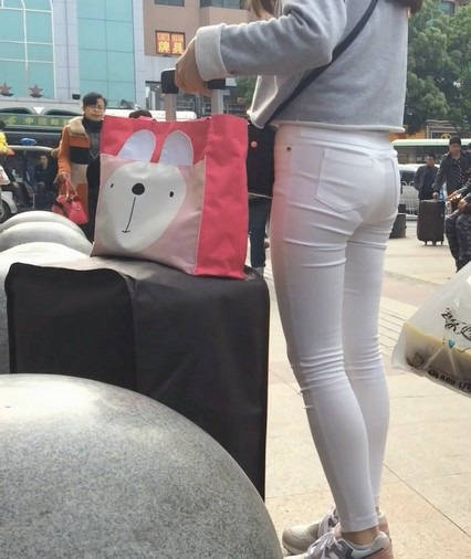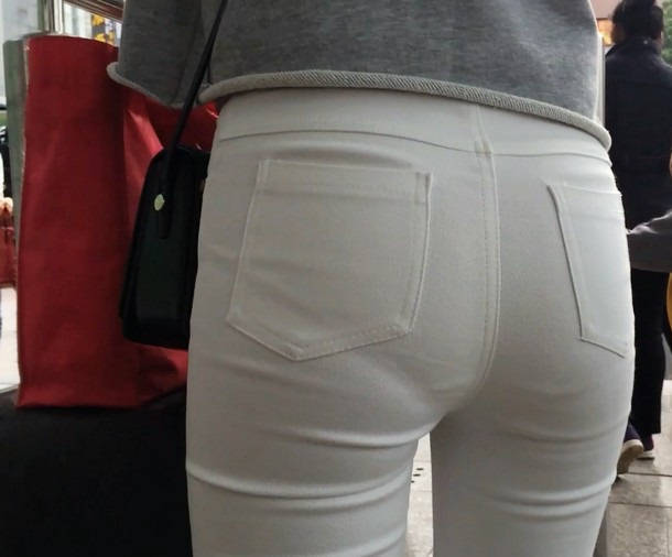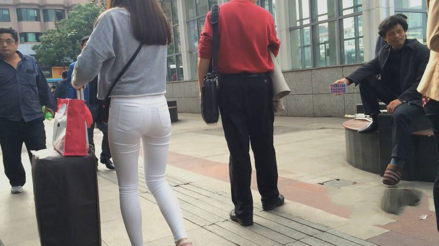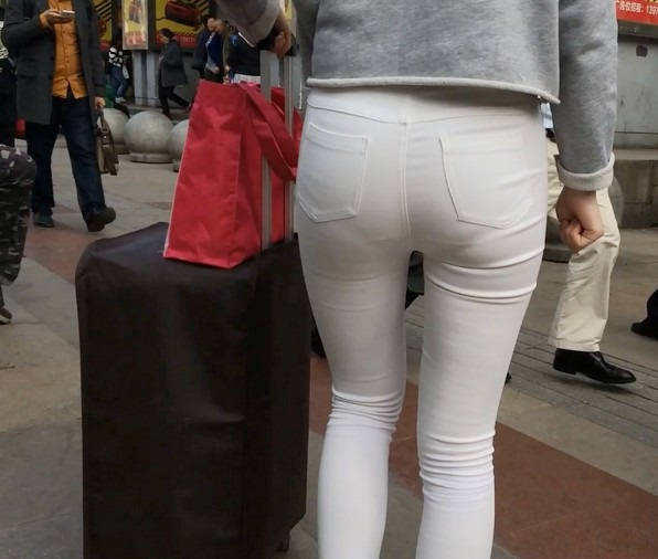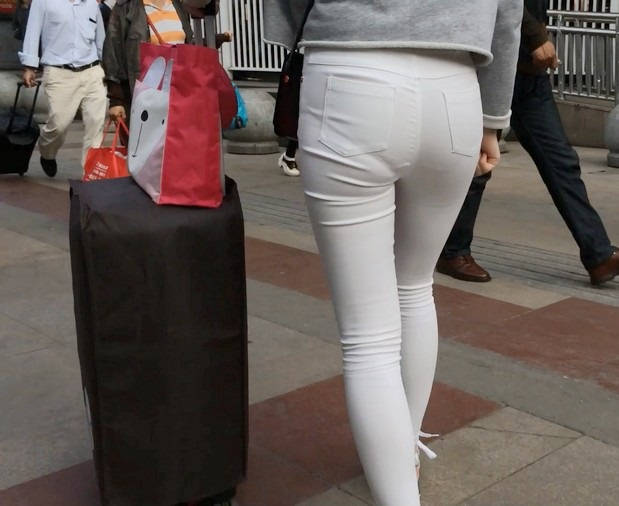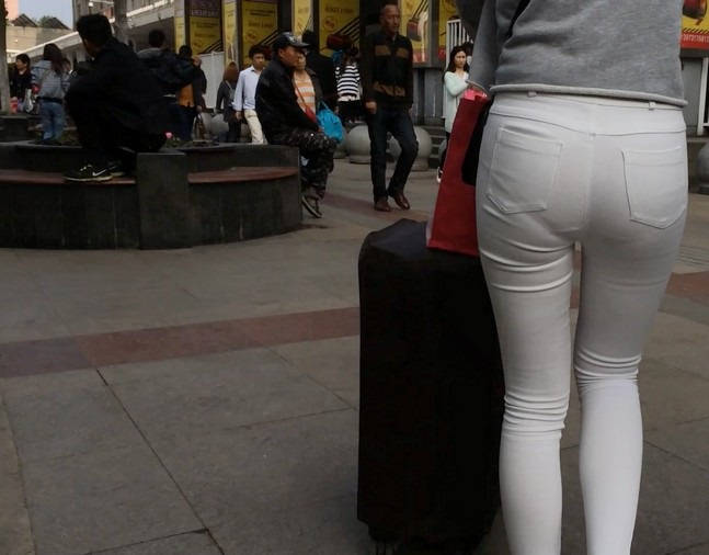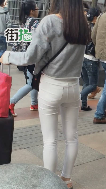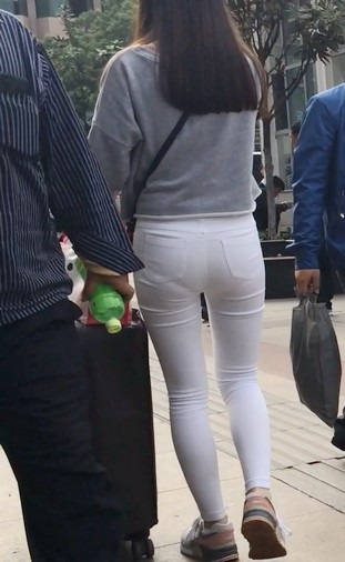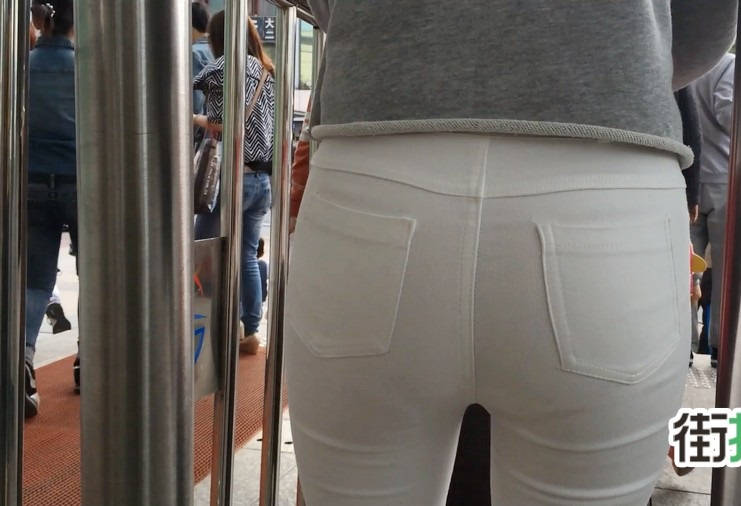 【编号858】街拍白裤女学生被猥琐大叔摸屁屁