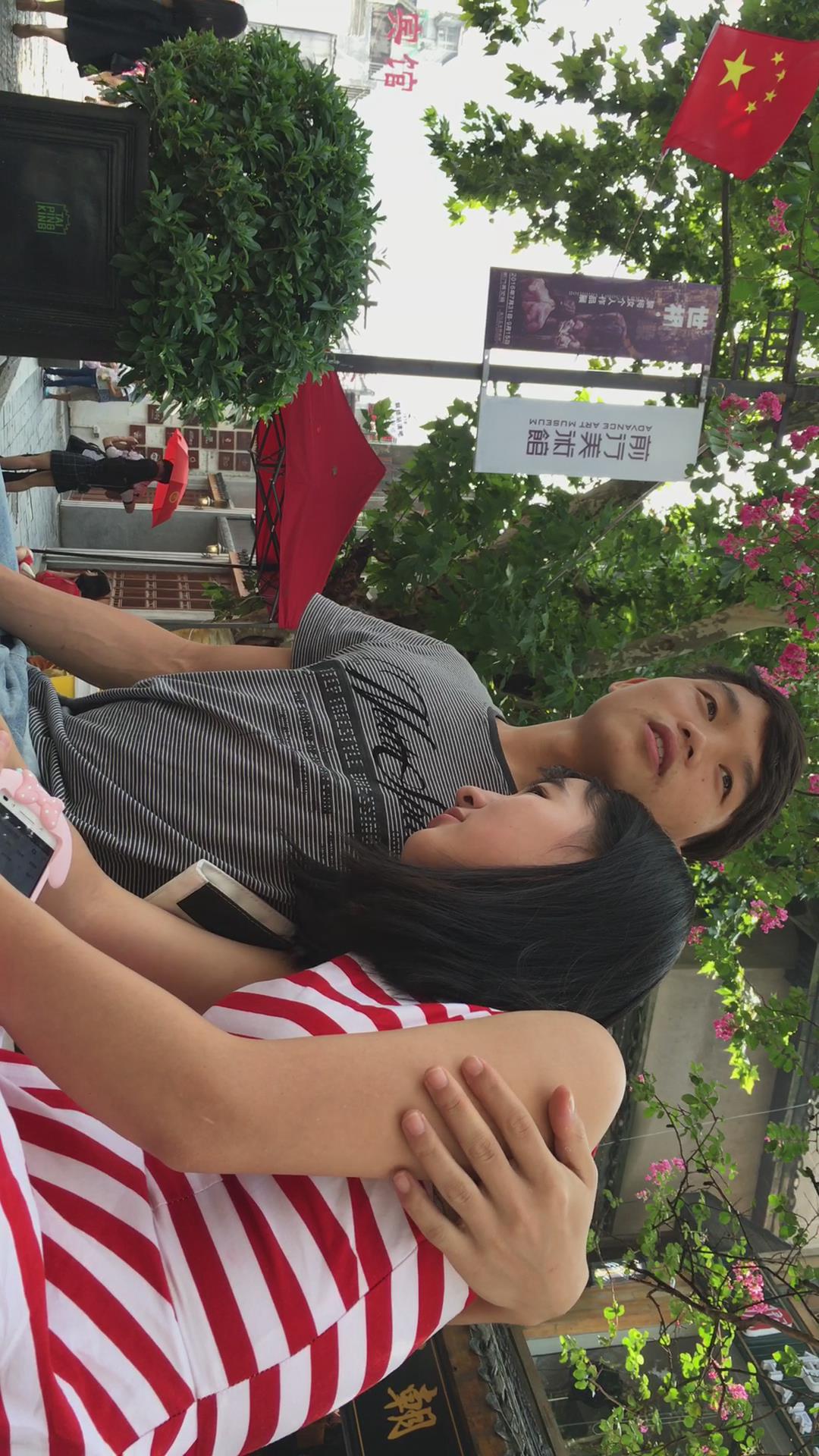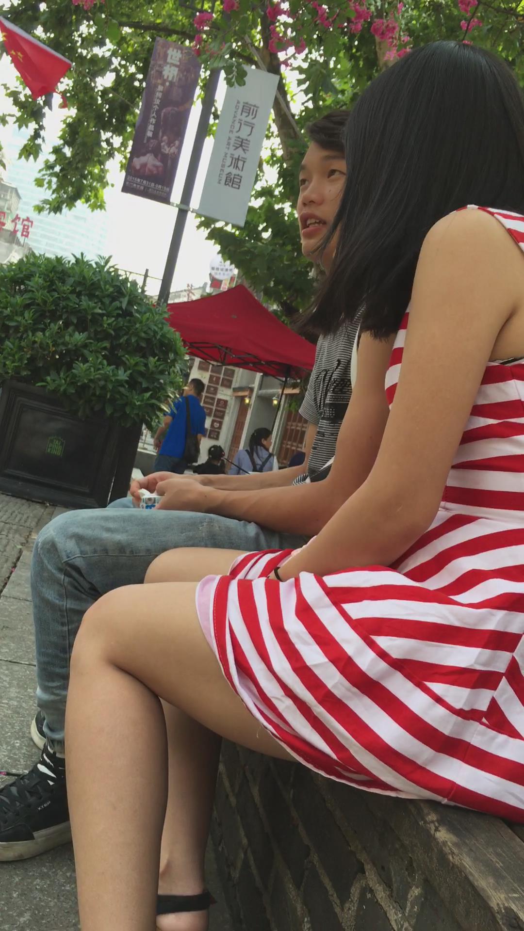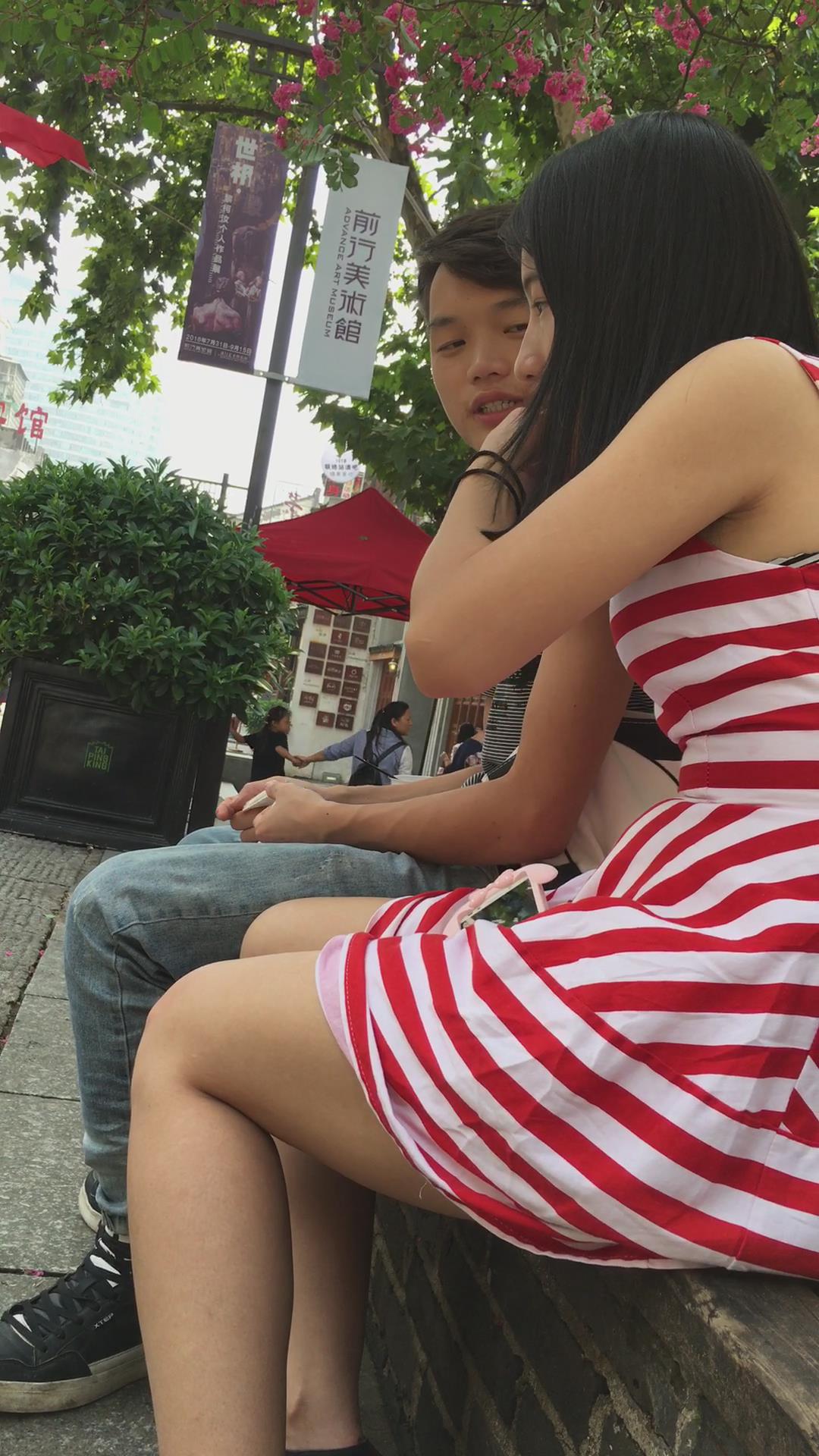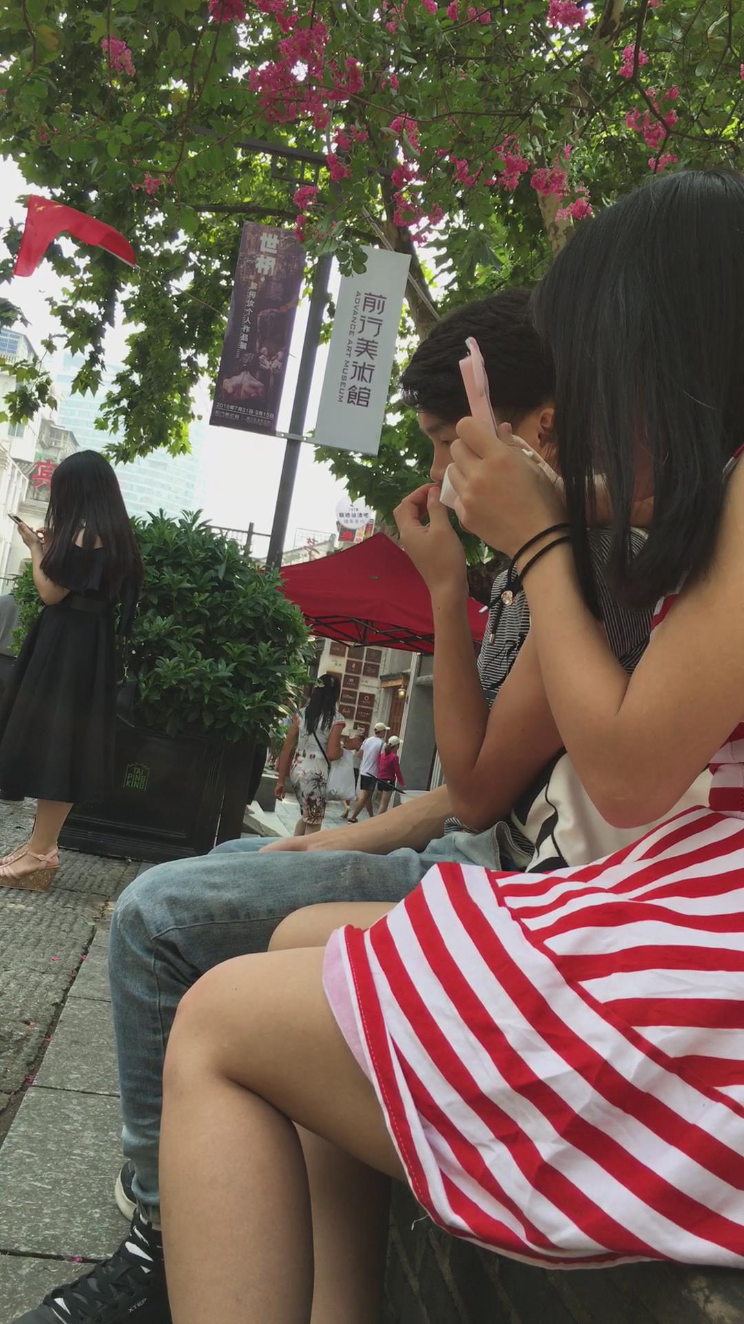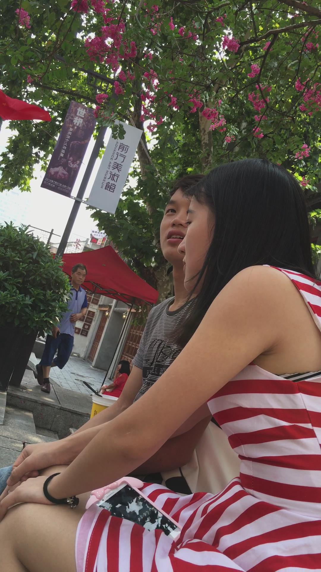 条纹裙美眉花坛边跟小男友腻歪 编号2021