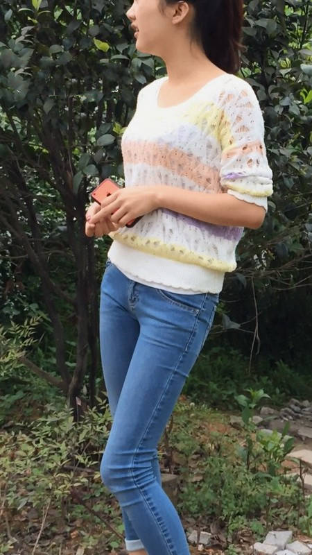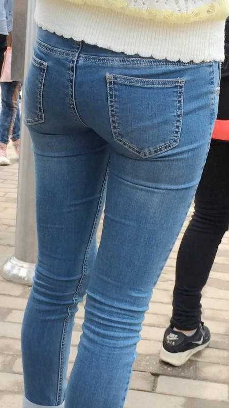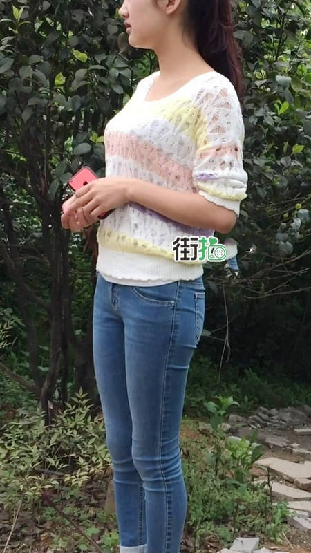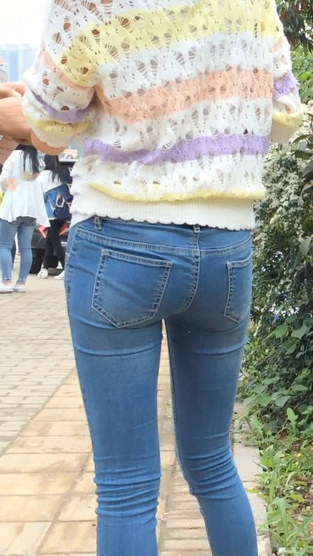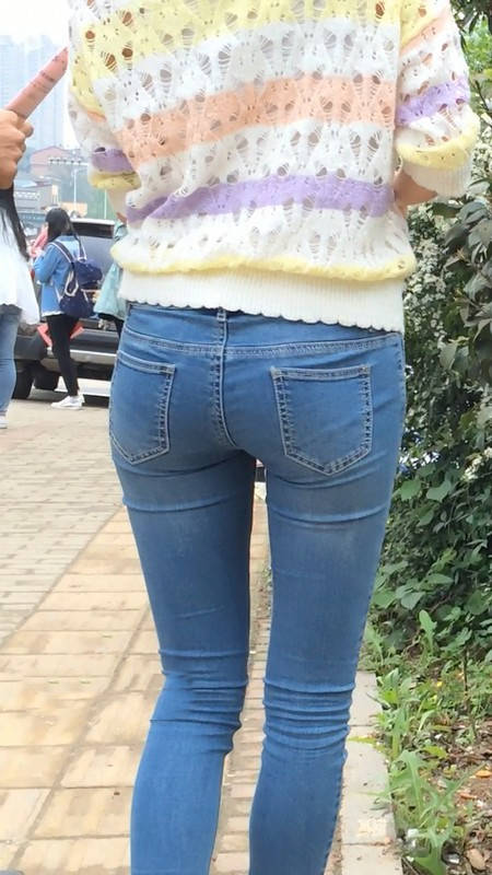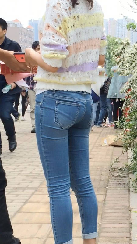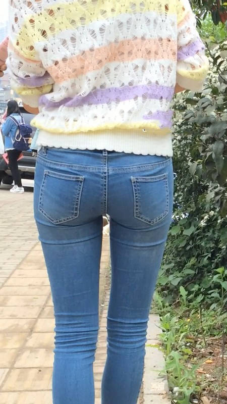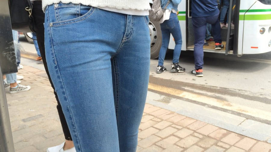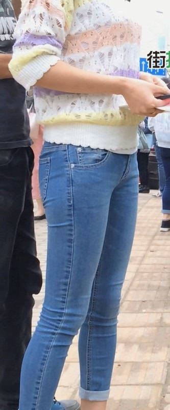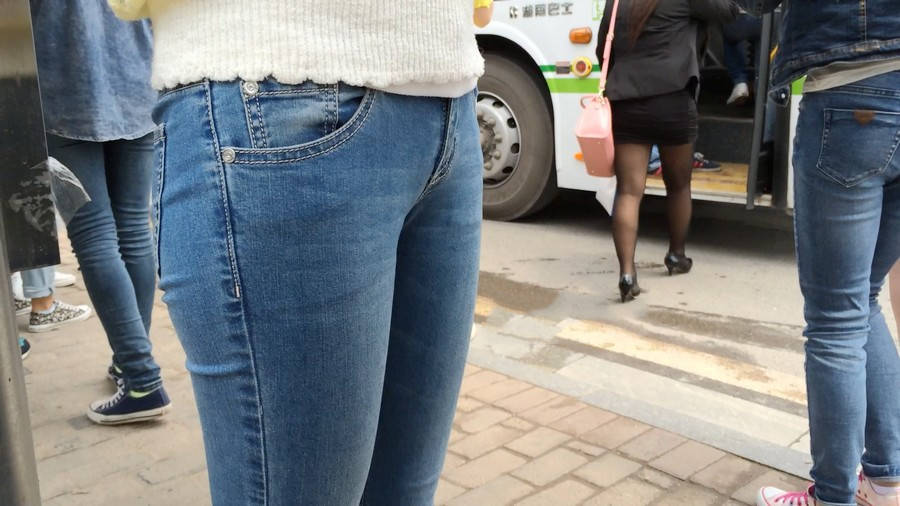 【编号859】街拍紧身牛仔裤美女等公交