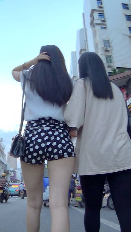 【编号946】街拍性感斑点短裤黑长直妹妹