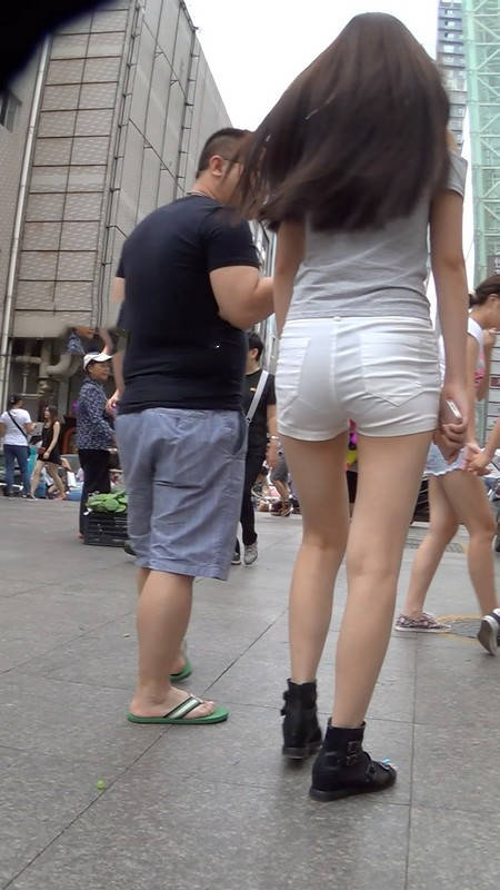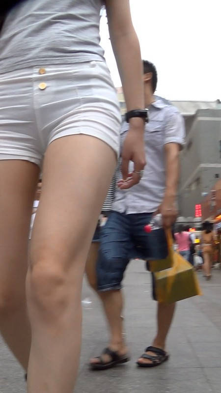【编号951】街拍白色短裤美腿翘臀又紧又透