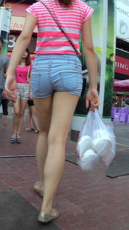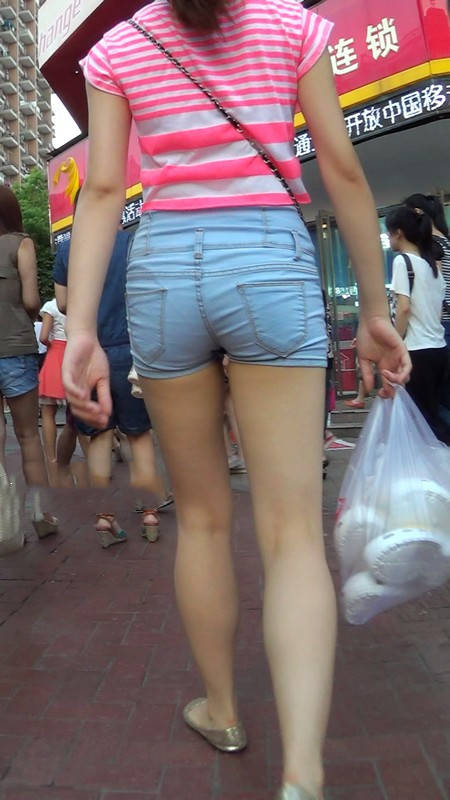 【编号1034】街拍牛仔紧身热裤少妇大白腿