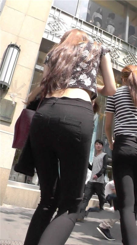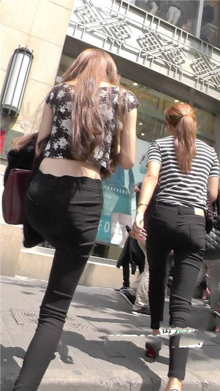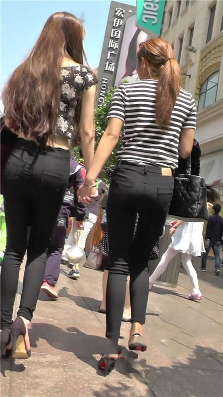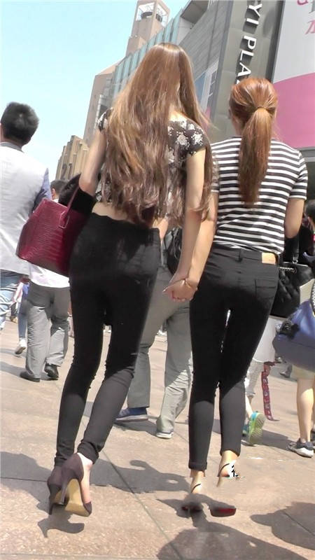 【编号1104】街拍黑色紧身裤时尚苗条双姝