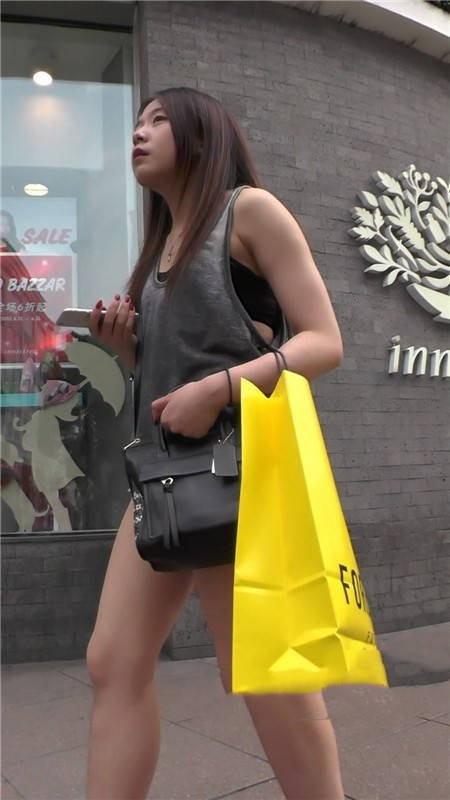 【编号1117】街拍牛仔热裤长发妹妹街边打车