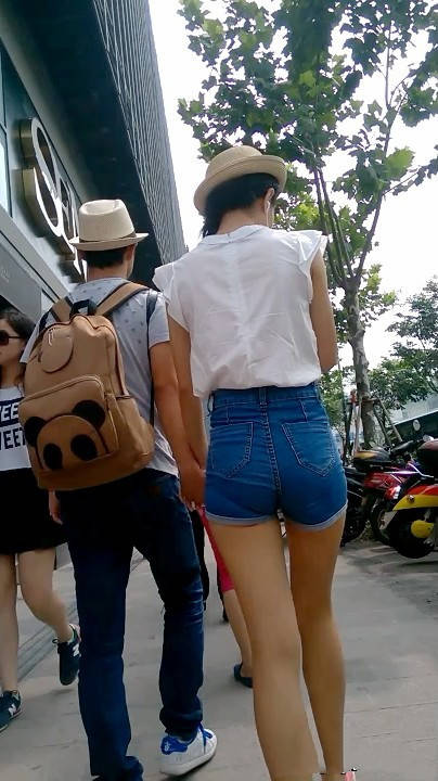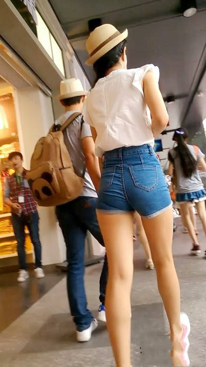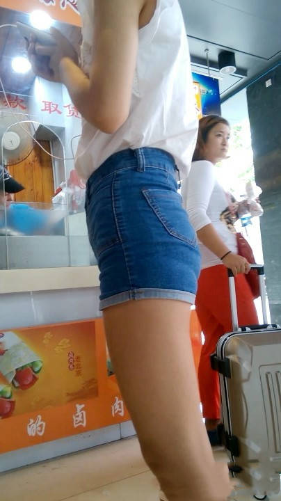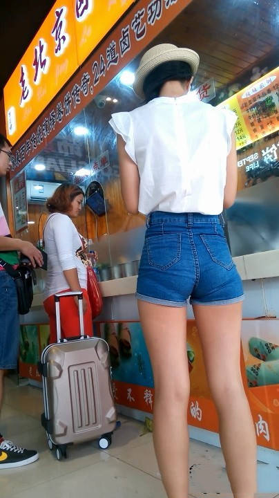 【编号628】满分长腿苗条紧身蓝牛热裤美女