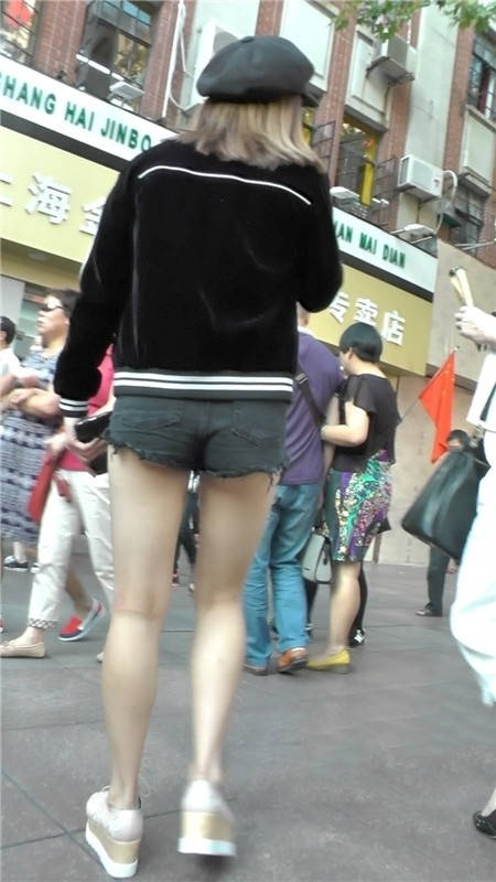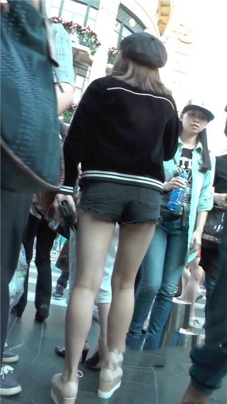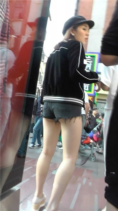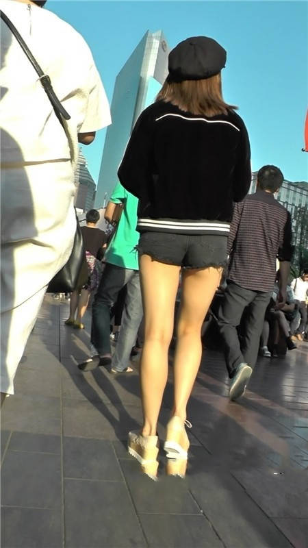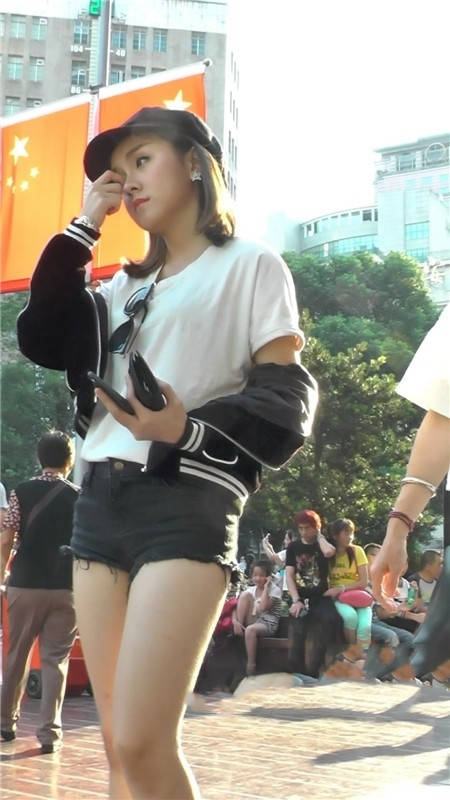【编号1181】街拍黑色短裤清凉时尚小美女