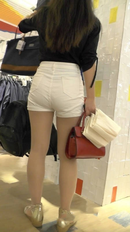 【编号1184】街拍白色紧身短裤小妹大肉臀