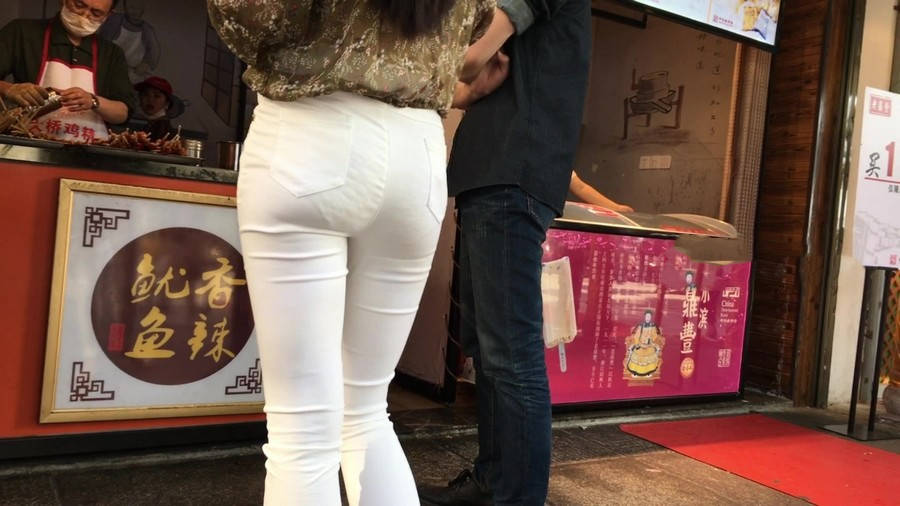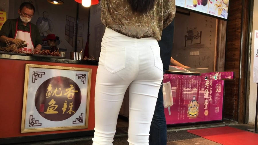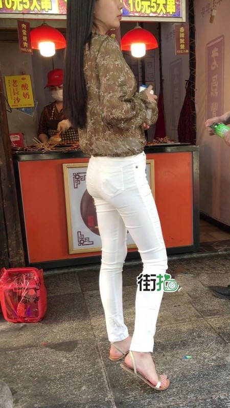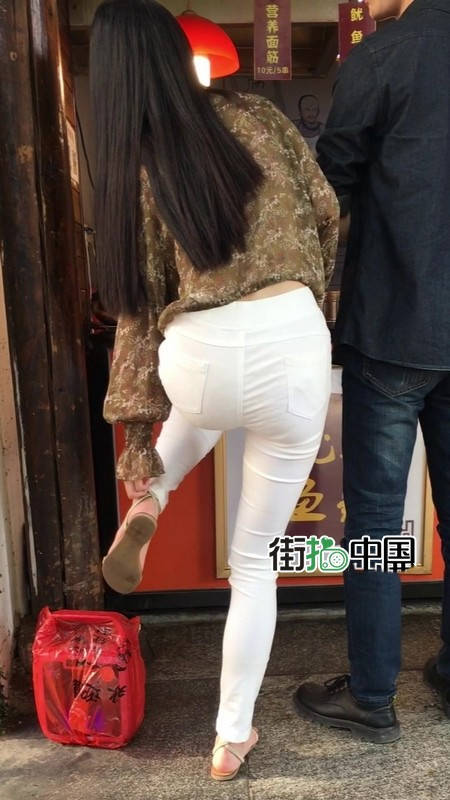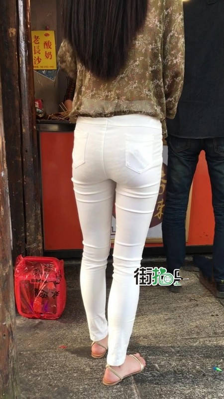 【编号1216】街拍白色紧身裤长腿翘臀苗条女友