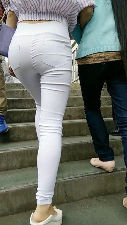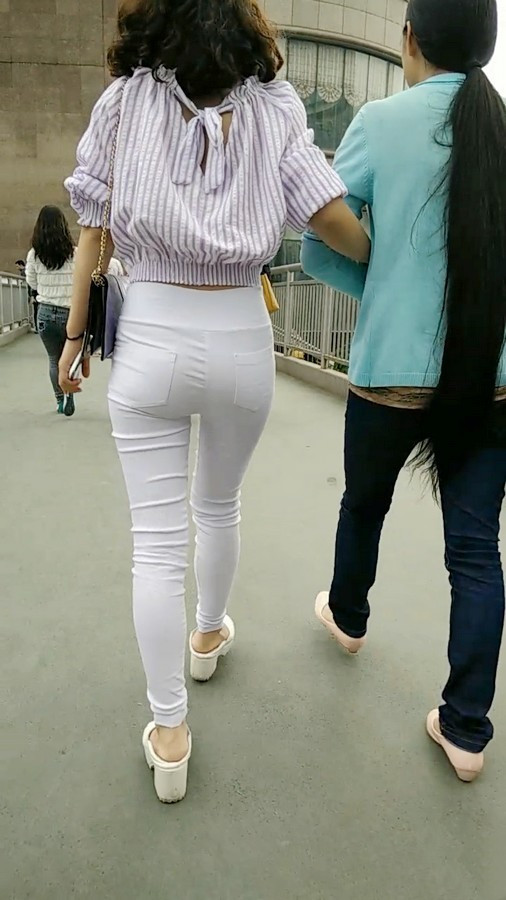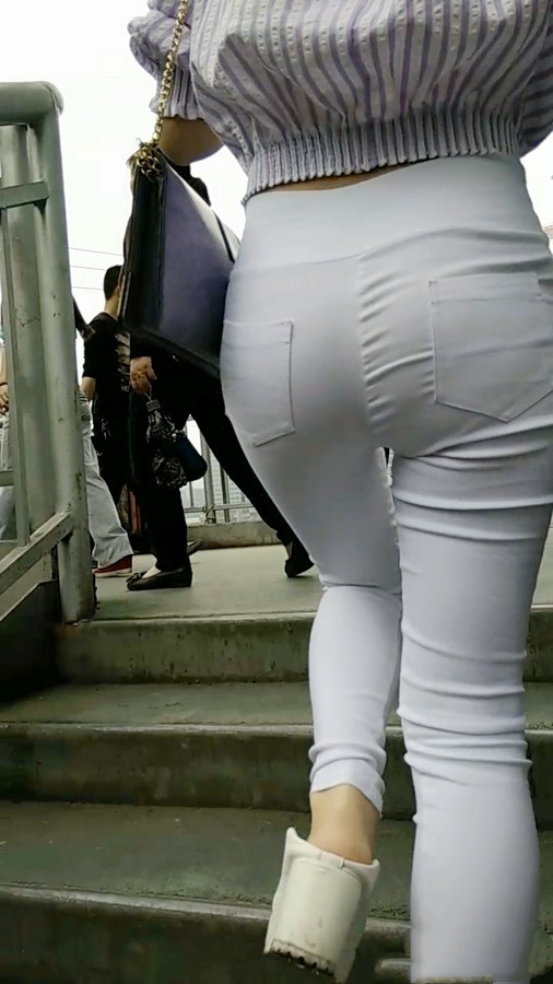 【编号616】跟拍长腿白裤女生上天桥