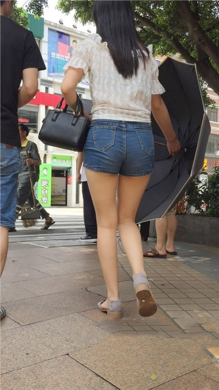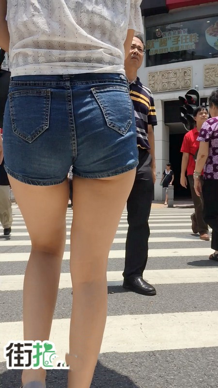 【编号756】街拍紧身牛仔热裤大白腿