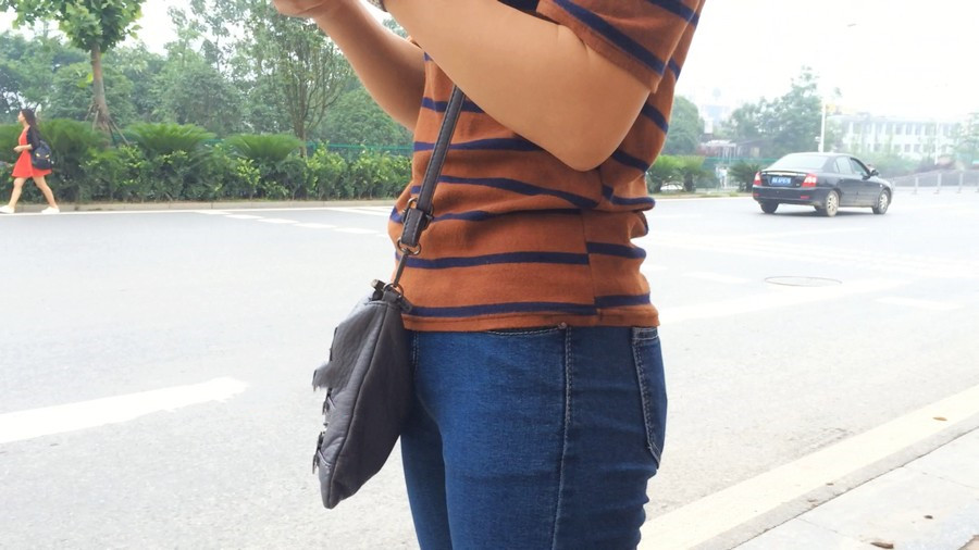 【编号860】街拍紧身蓝牛少妇等公交