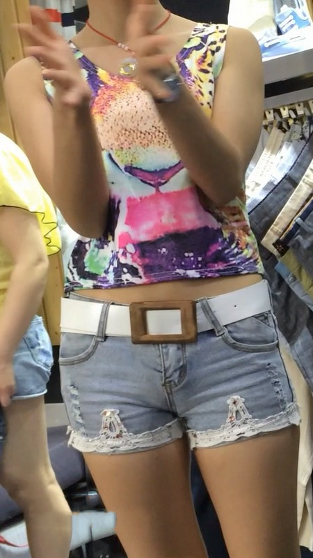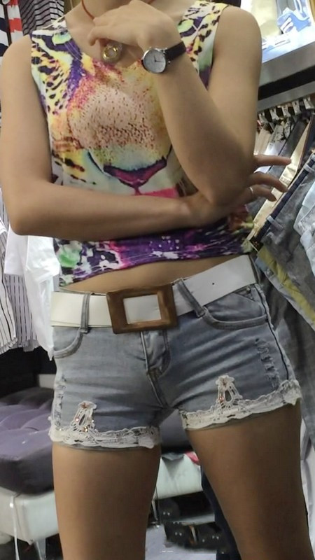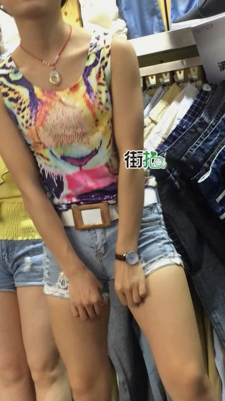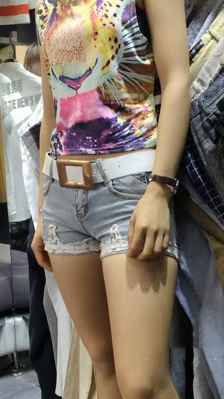 【编号864】街拍服装店牛仔热裤导购小妹