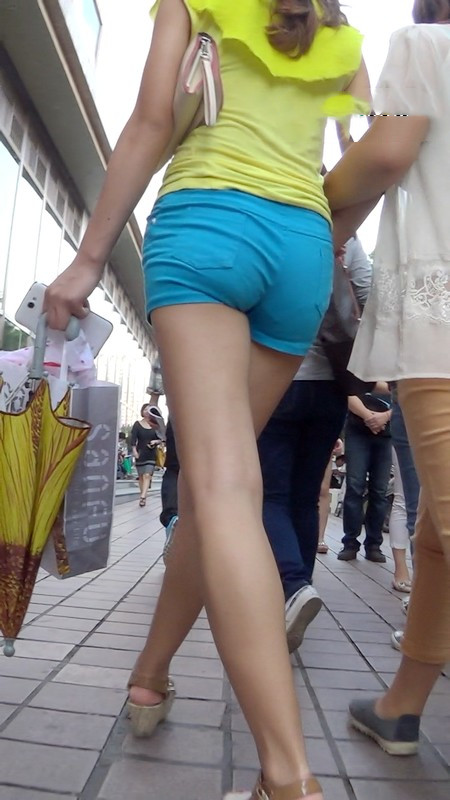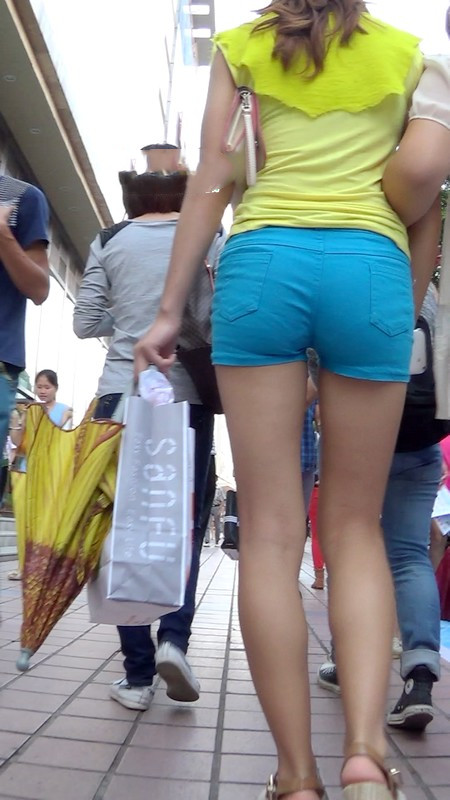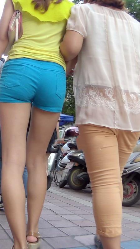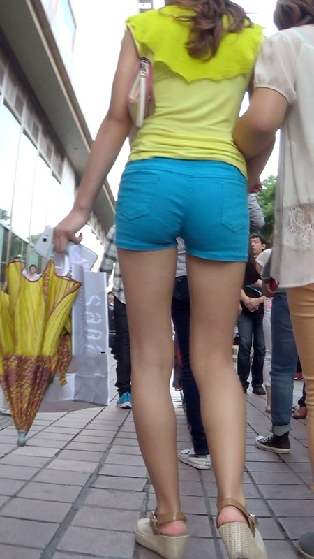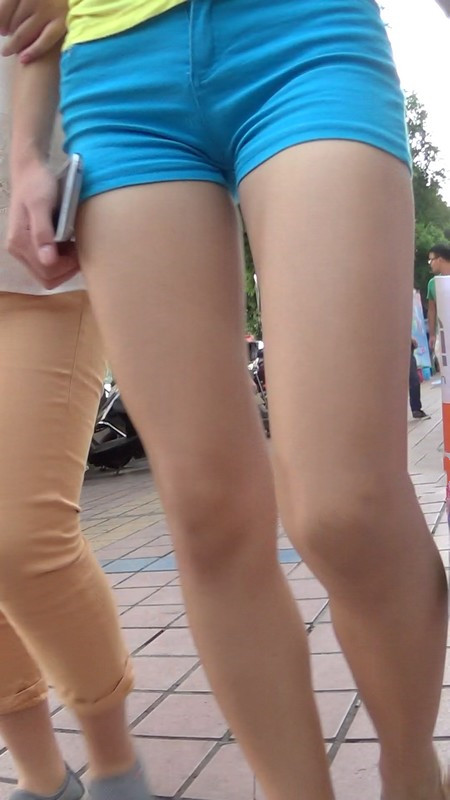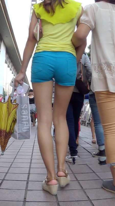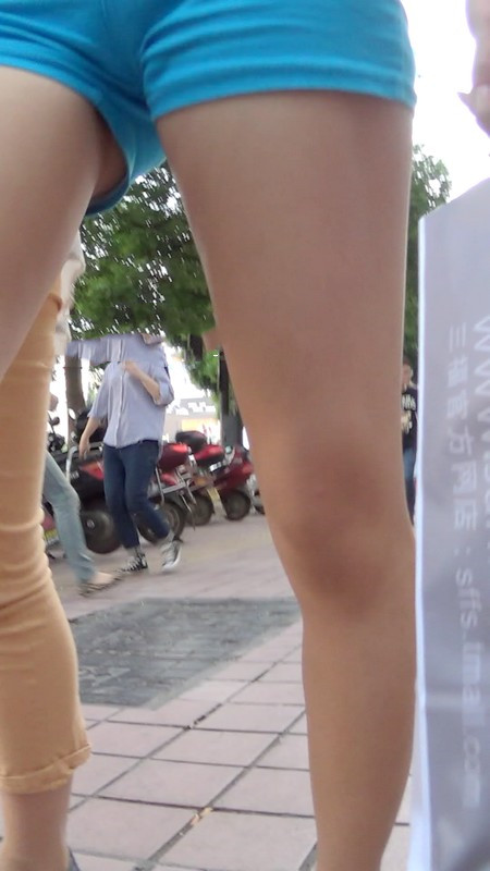 【编号1037】街拍蓝色紧身热裤少妇实在太紧了