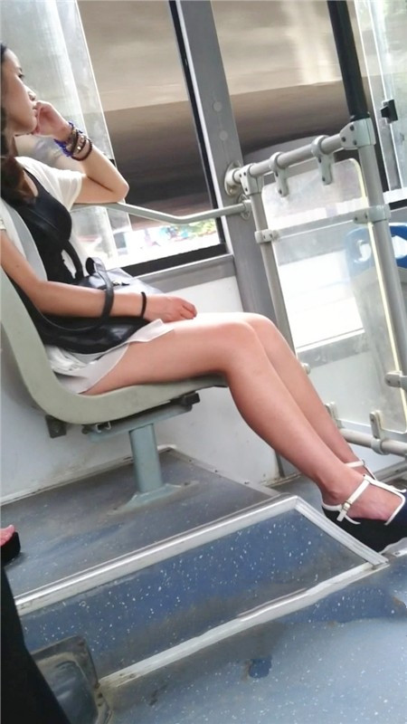 【编号1068】街拍白衣少妇坐公交看不见下身穿着