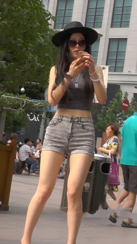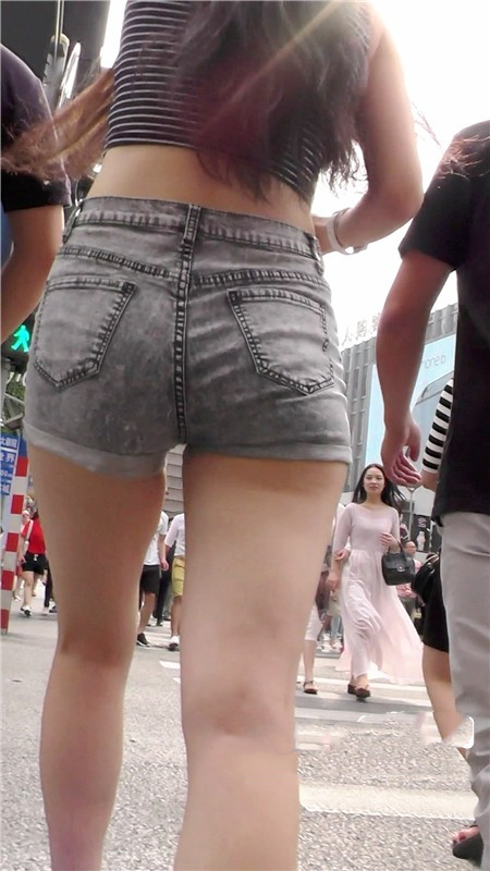 【编号1082】街拍性感牛仔紧身短裤美女细腰翘臀长腿
