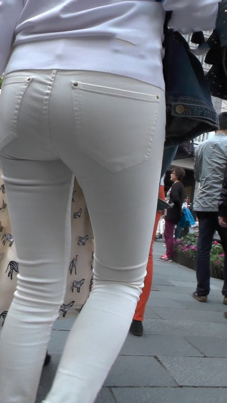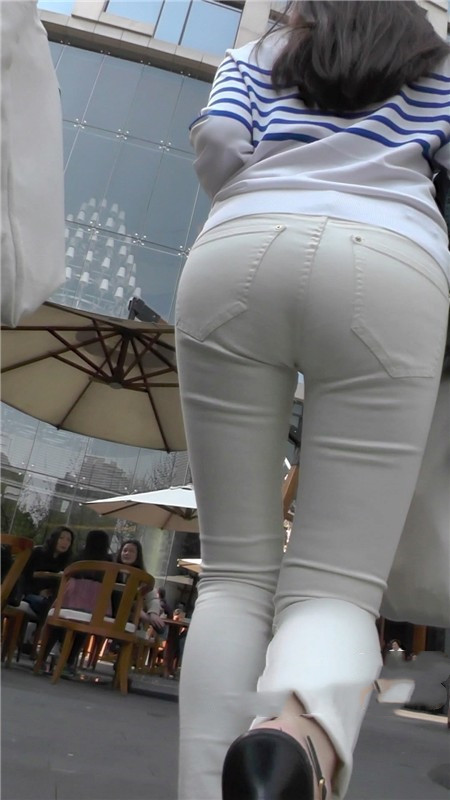 【编号1099】街拍苗条白裤紧臀美女逛街