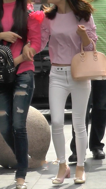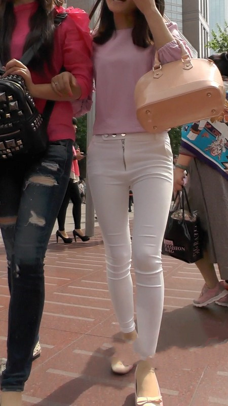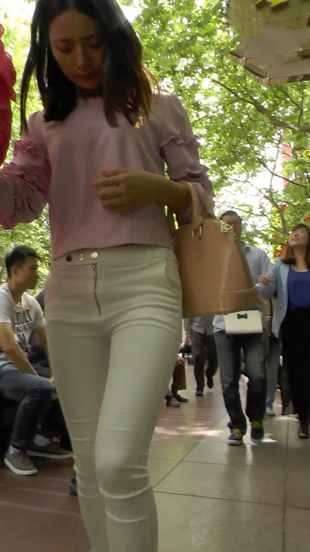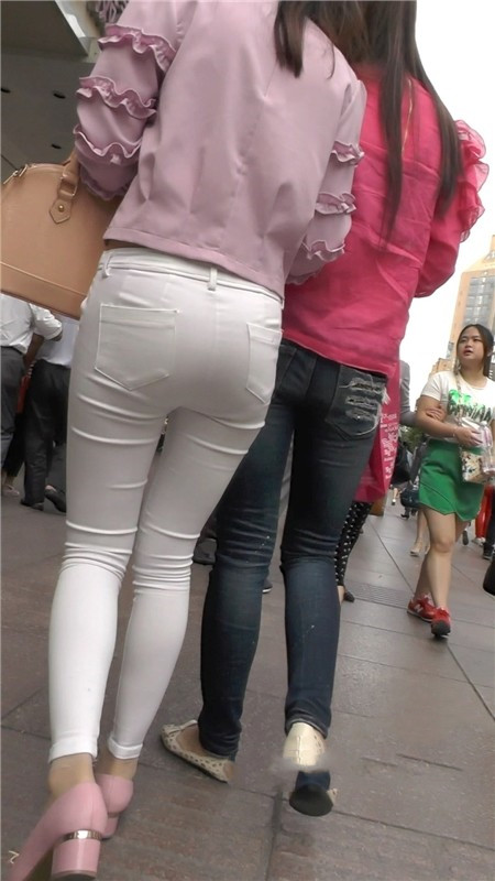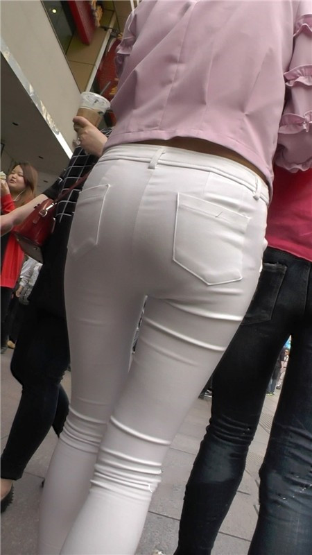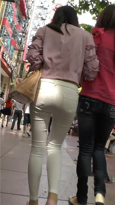 【编号1107】街拍白色紧身裤长腿翘臀苗条少女
