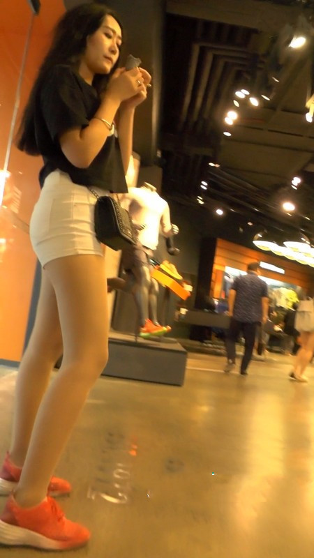 【编号1146】街拍白色紧身热裤美女吃甜筒