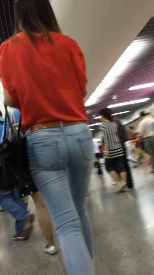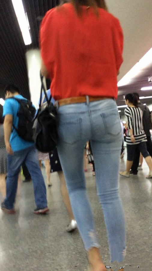 【编号567】匆忙赶地铁的蓝牛大屁股女子