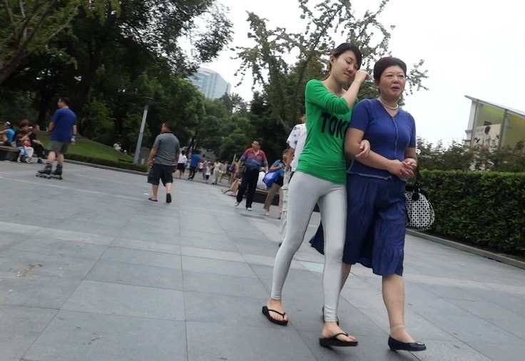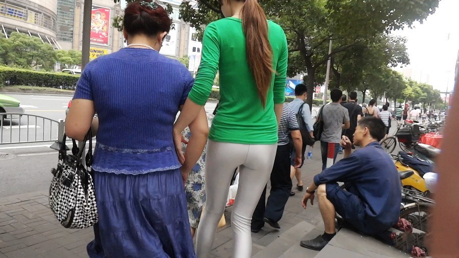 【编号581】银色紧身打底裤外穿的苗条小妹