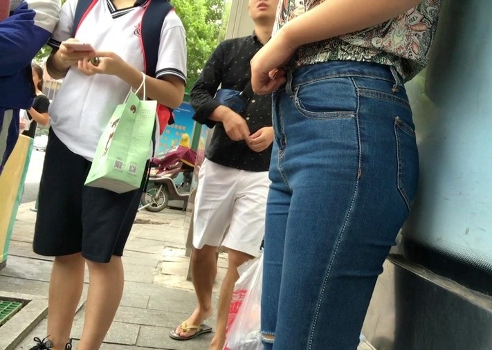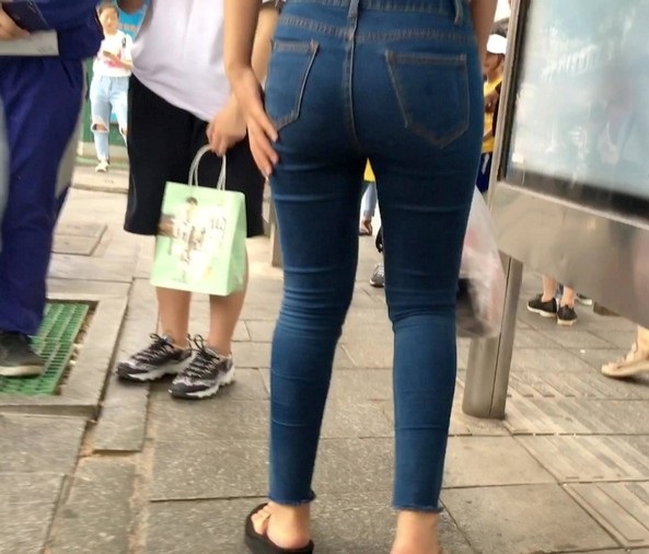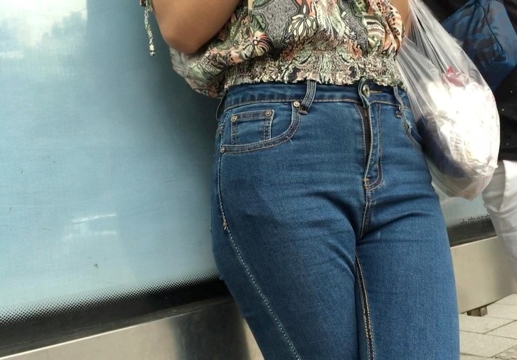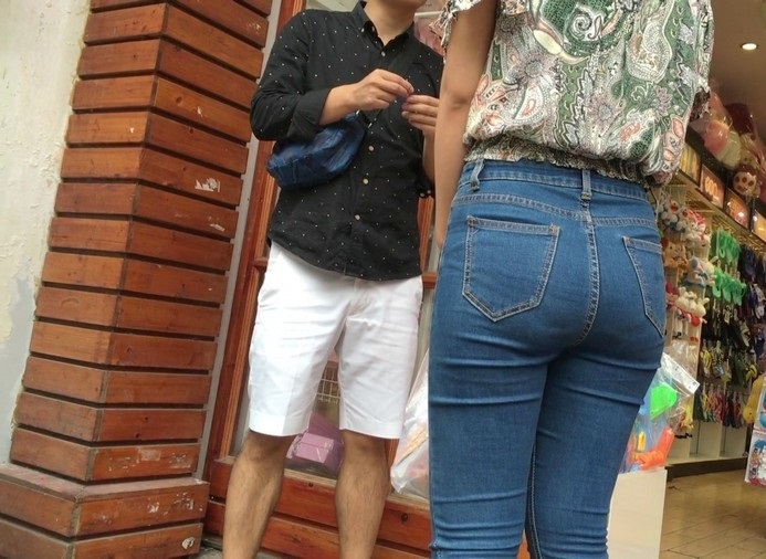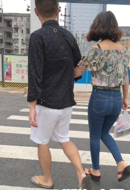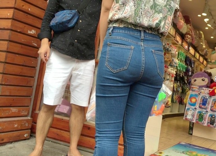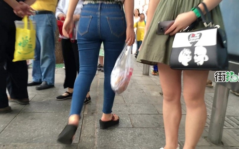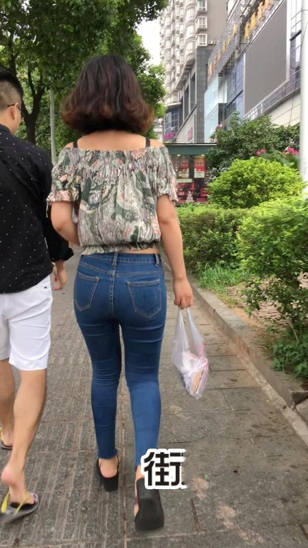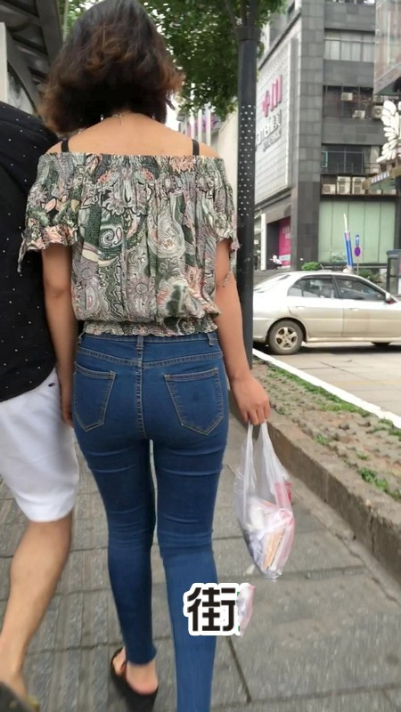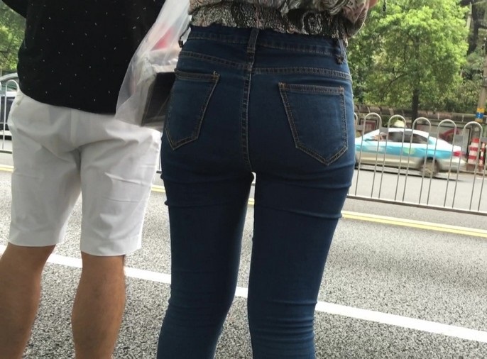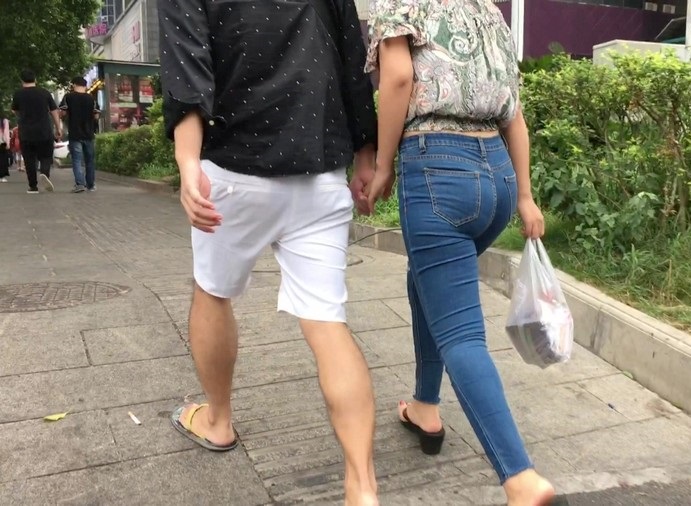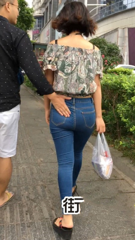 【编号1161】街拍紧身牛仔裤MM被男友摸屁股