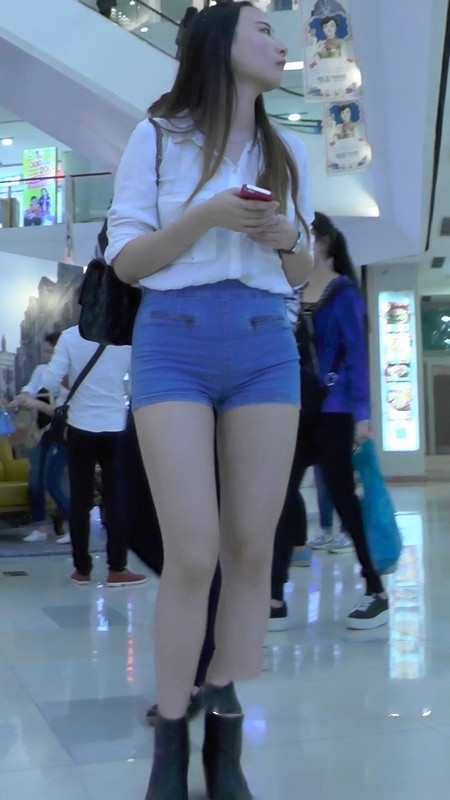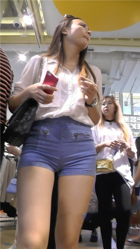 【编号1167】街拍紧身牛仔短裤美女逛商场