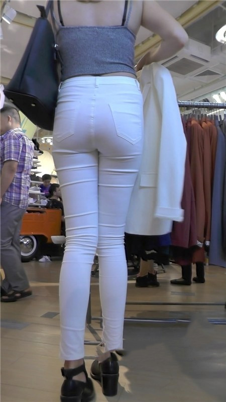 【编号1173】街拍紧身白裤极品长腿翘臀美女