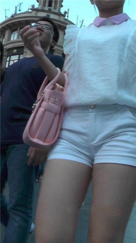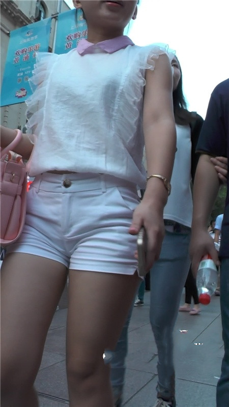 【编号1203】街拍白色短裤大屁股小妹逛步行街
