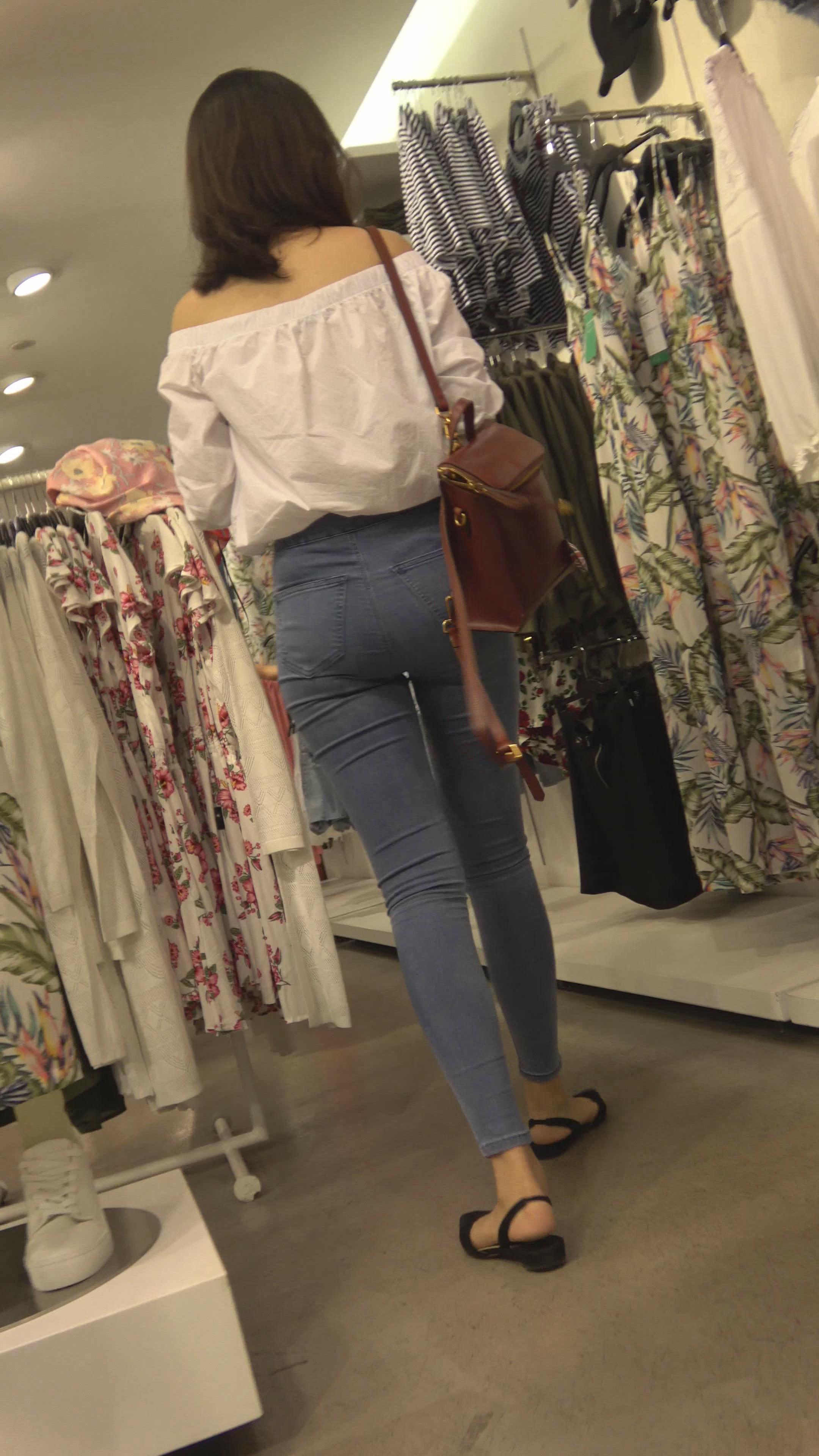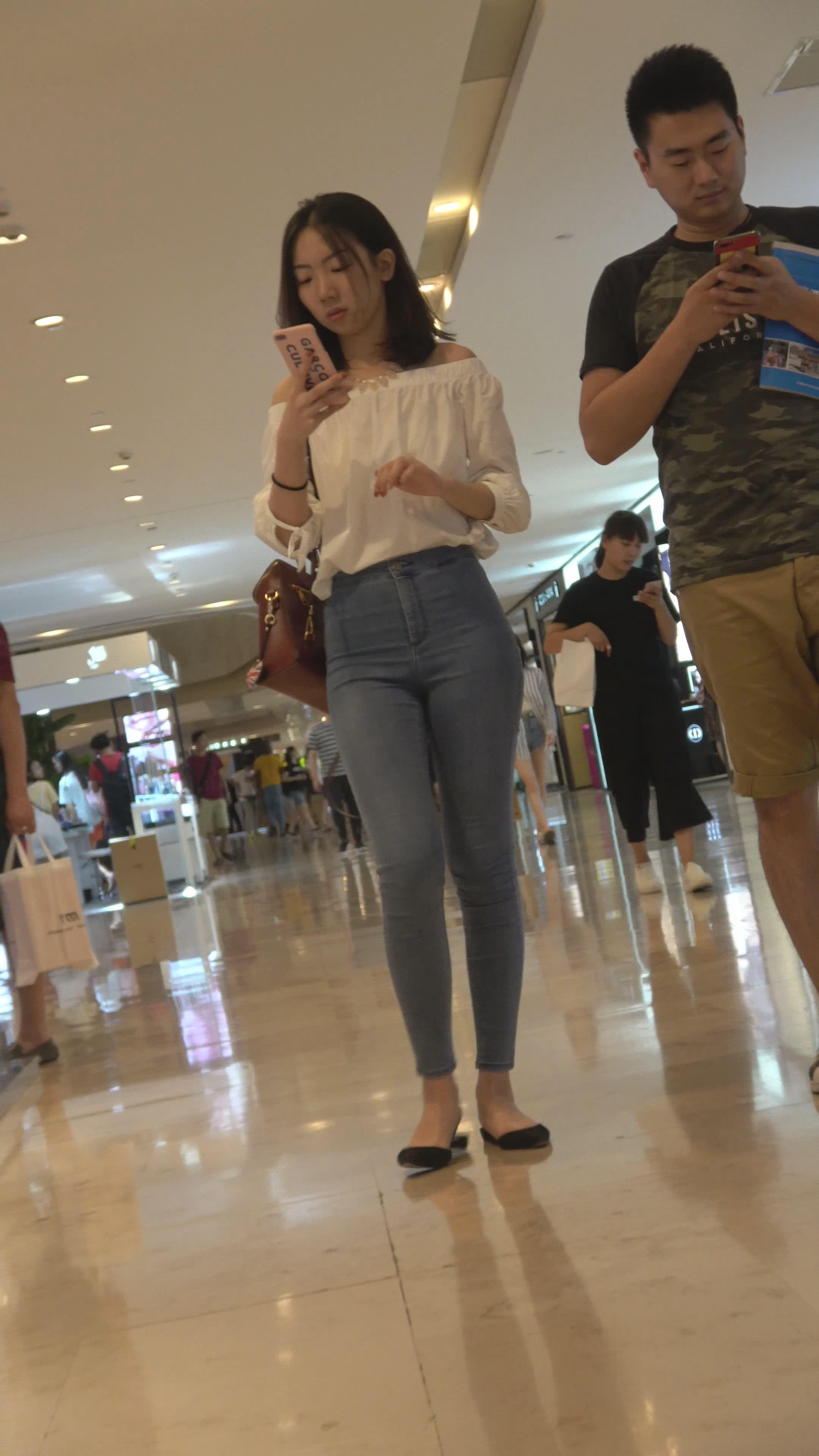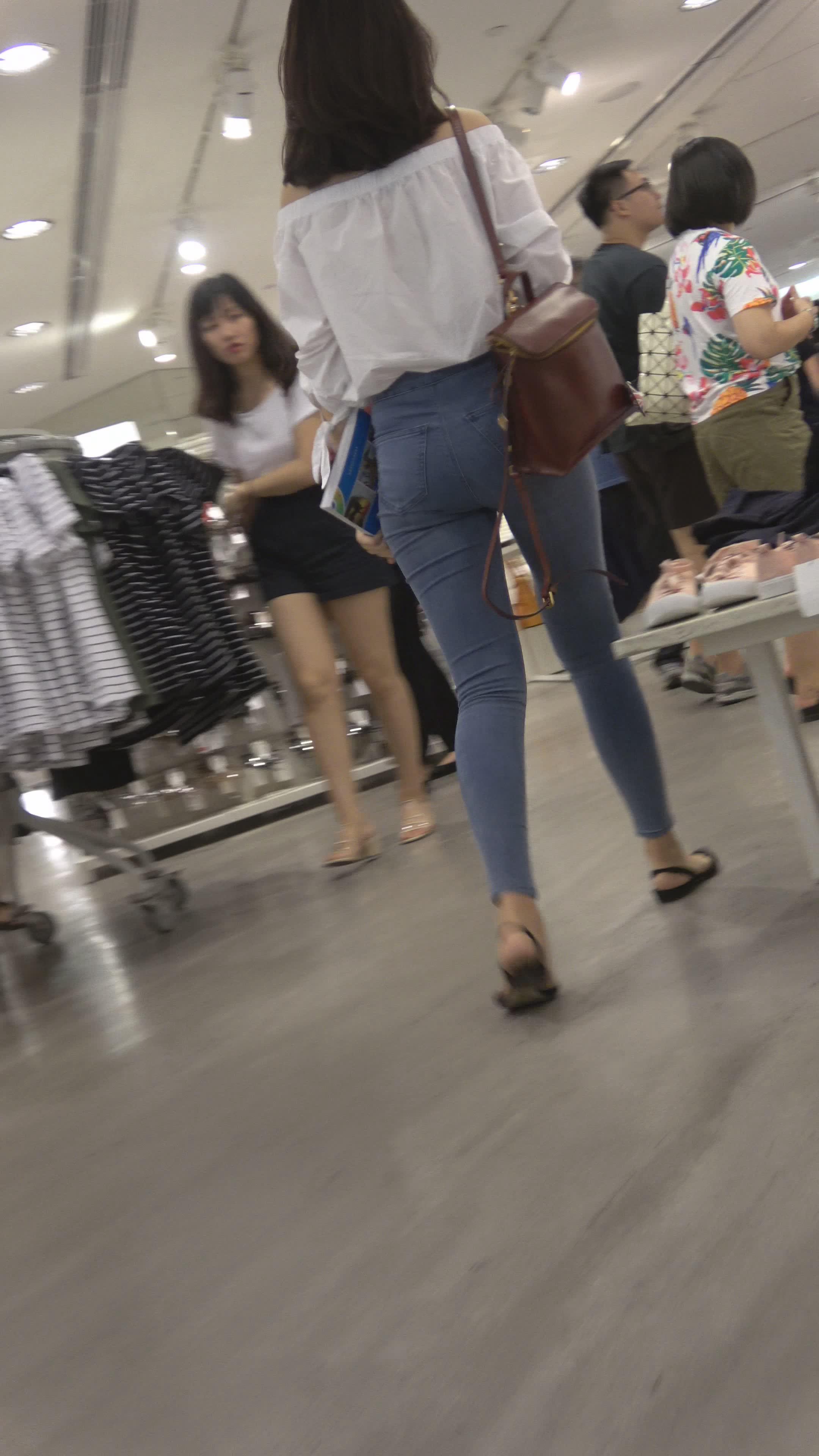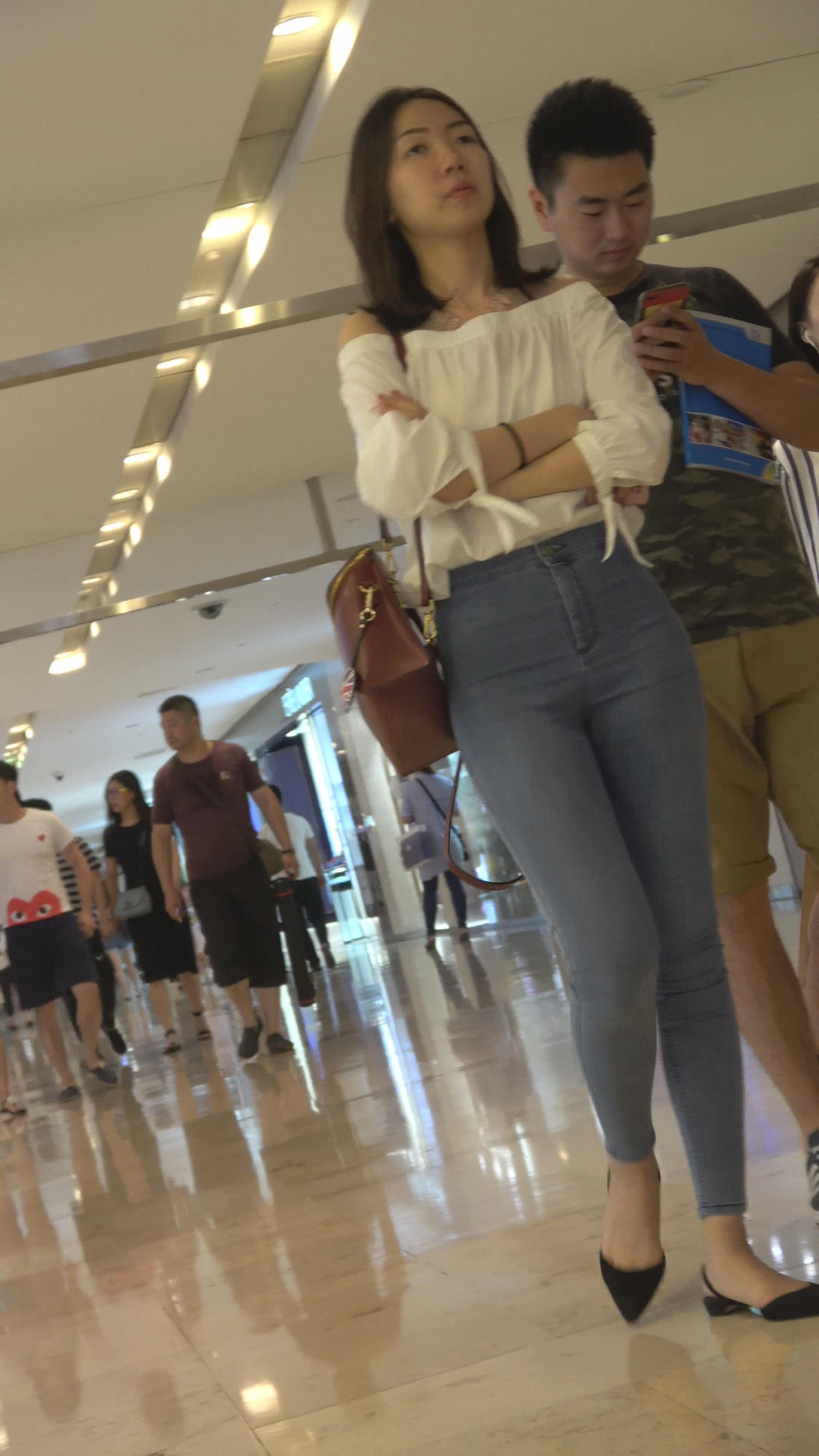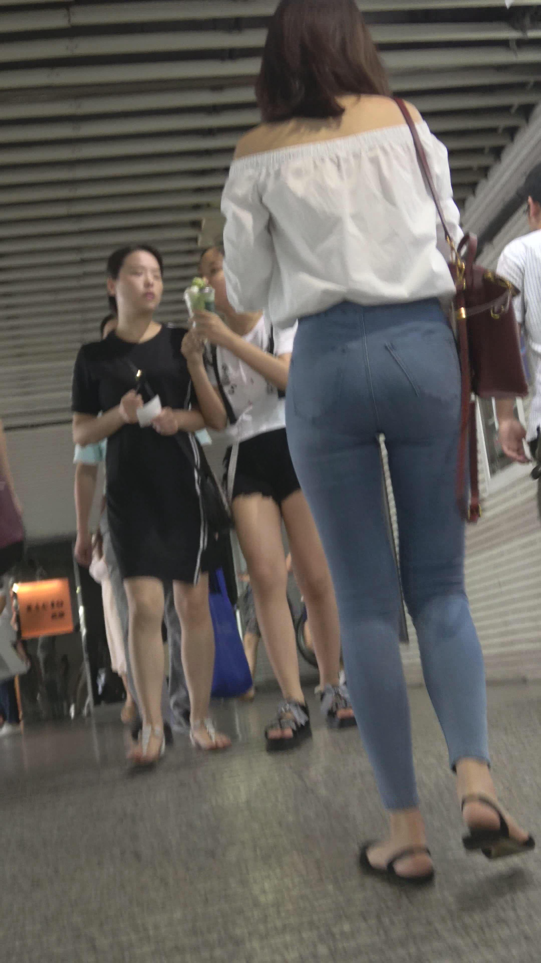 4k-高颜值紧身蓝色牛仔裤女神姐姐,美臀太紧啦 编号3123