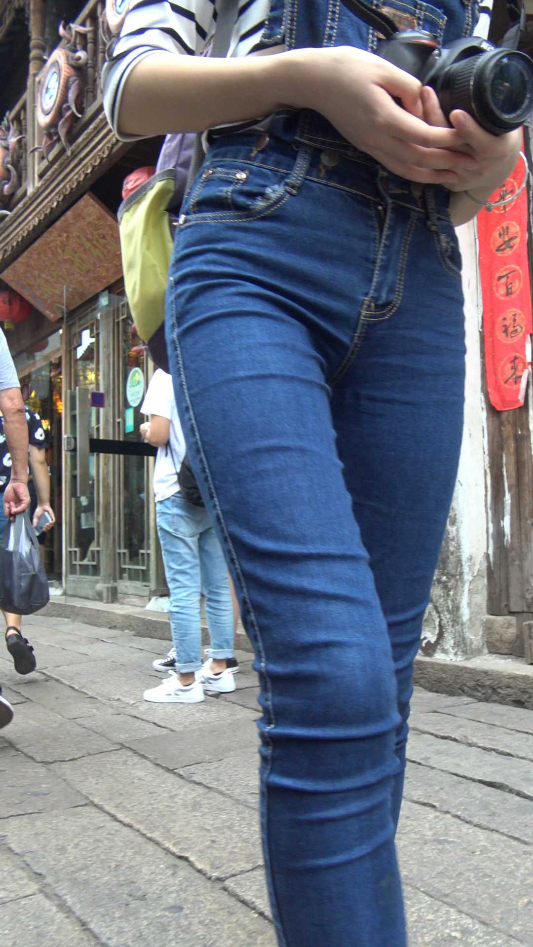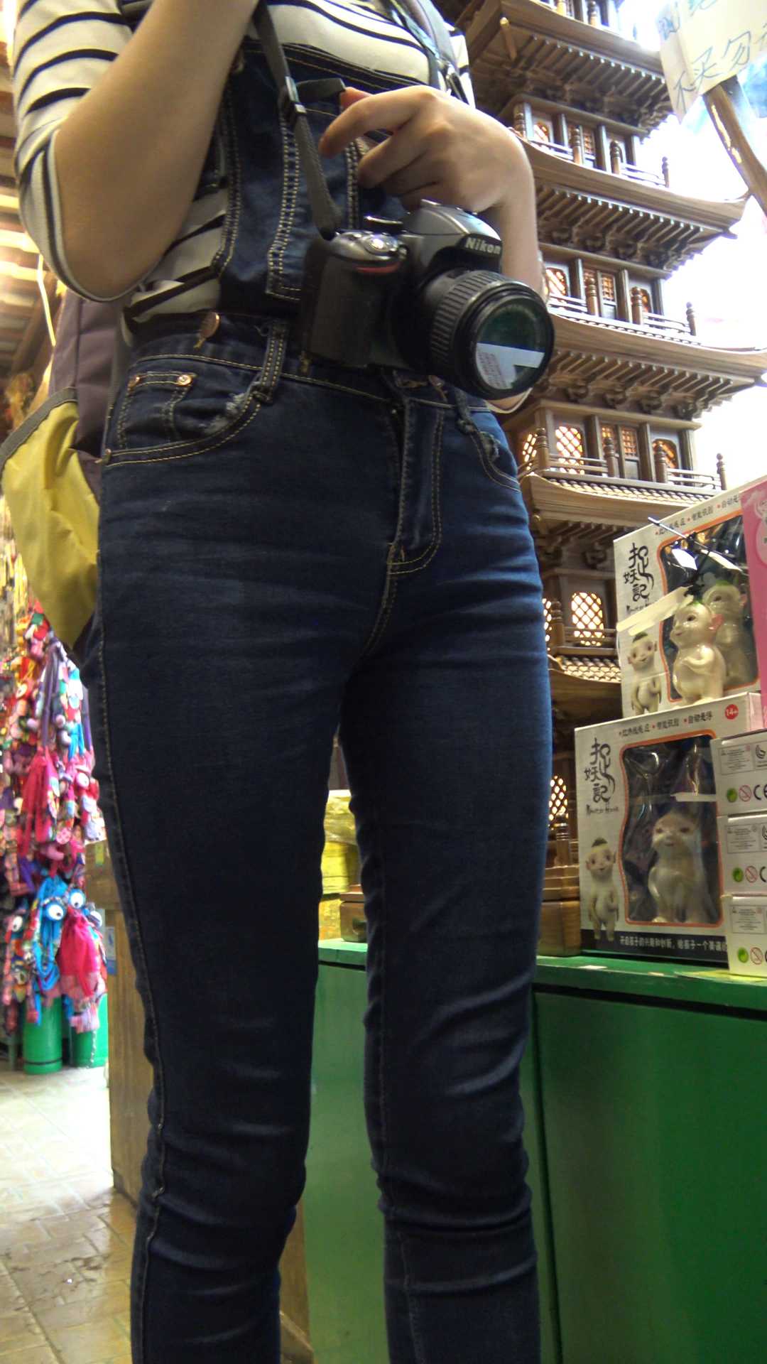 | C860紧身带背带牛仔三角特写 |