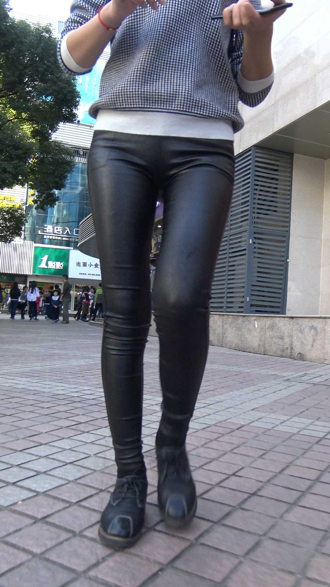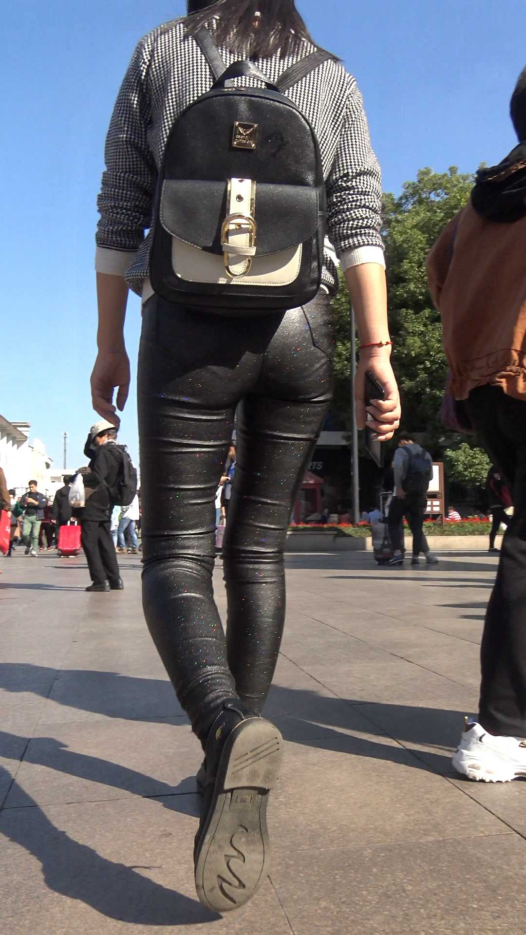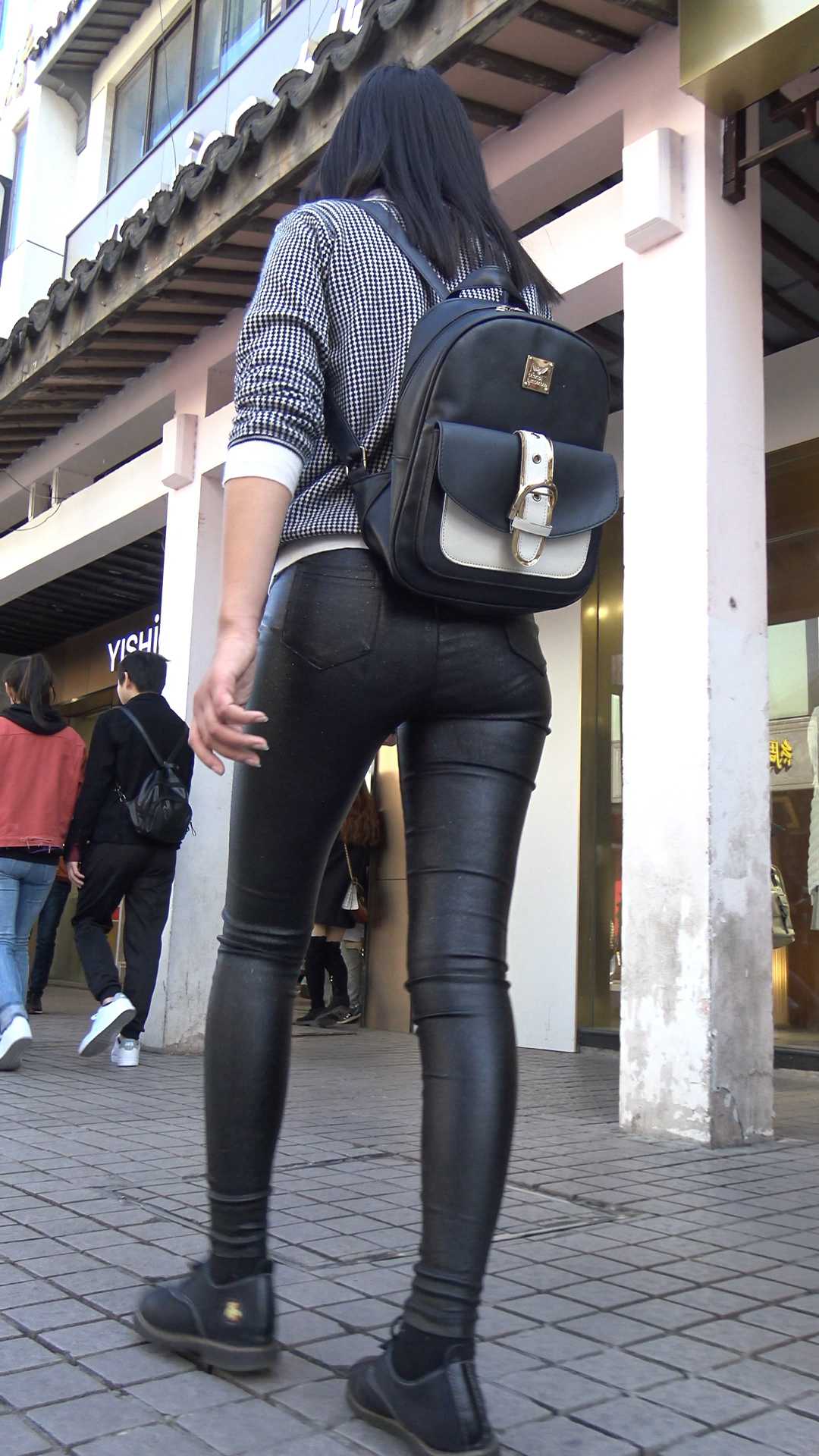 | C902紧身皮裤圆臀背包少女 |